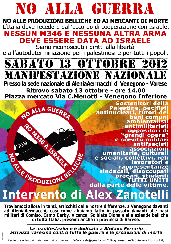 Pubblichiamo volantino per CORTEO del 28 Giugno a Venegono (VA) contro la consegna degli M346 ad Israele.